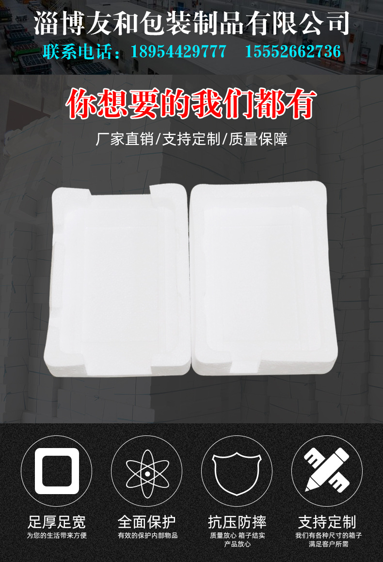 介紹參數圖冊 ????淄博友和包裝制品有限公司是專業的山東泡沫包裝箱加工廠家,本廠主要產品有:泡沫包裝箱,泡沫保鮮箱,水果蔬菜泡沫包裝箱,水果蔬菜泡沫保鮮箱,瓷磚泡沫包裝箱等,產品暢銷全國,深受用戶好評。泡沫包裝定做可以聯系我們網站 http://m.jmao.com.cn/ 上電話,我們會第一時間跟您聯系。 上一篇電磁包裝泡沫箱 下一篇蓄電池泡沫包裝箱
