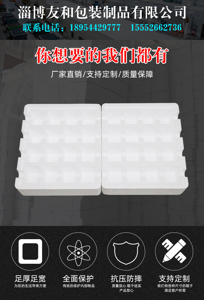 介紹參數圖冊 ????淄博友和包裝制品有限公司是專業的山東泡沫包裝箱加工廠家,本廠主要產品有:泡沫包裝箱,泡沫保鮮箱,水果蔬菜泡沫包裝箱,水果蔬菜泡沫保鮮箱,瓷磚泡沫包裝箱等,產品暢銷全國,深受用戶好評。泡沫包裝定做可以聯系我們網站 http://m.jmao.com.cn/ 上電話,我們會第一時間跟您聯系。 上一篇10升玻璃容器包裝箱 下一篇9孔雞蛋禮盒包裝盒